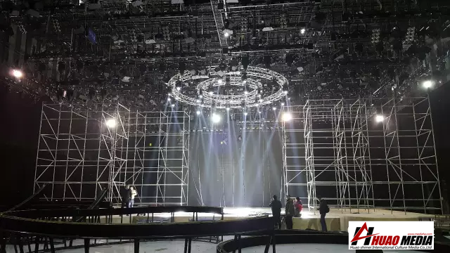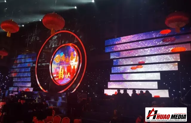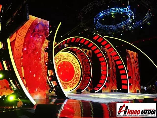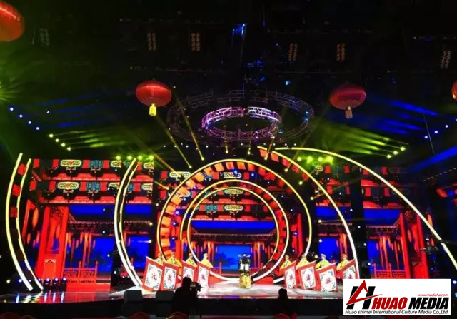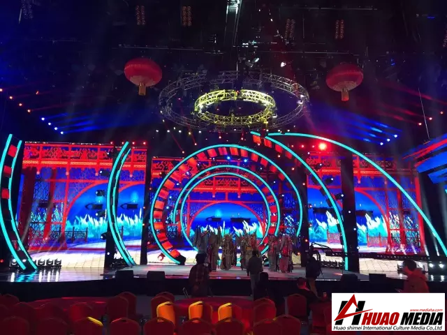 本次舞臺(tái)最大亮點(diǎn)為后方的超大屏幕搭載視頻服務(wù)器,開出圓形窗口,可同時(shí)播放兩個(gè)視頻素材,讓現(xiàn)場在多個(gè)場景之間完美切換。整個(gè)舞臺(tái)設(shè)計(jì)實(shí)現(xiàn)空中和地面的全覆蓋運(yùn)用,令舞臺(tái)效果更加多變,更加炫酷。為觀眾呈現(xiàn)出一個(gè)高顏值的春晚舞臺(tái)。