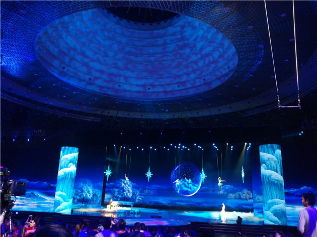本次電影節(jié)最大的亮點是震撼唯美的視覺舞臺,與時俱進(jìn)的加入了VR科技元素,同時運用了2000平米的LED全彩屏、紗幕、側(cè)幕、全息幕、投影幕等多種世界頂尖影像技術(shù)的混合使用,同時呈現(xiàn)出電影與舞蹈、體育、繪畫、雜技等的跨界結(jié)合。