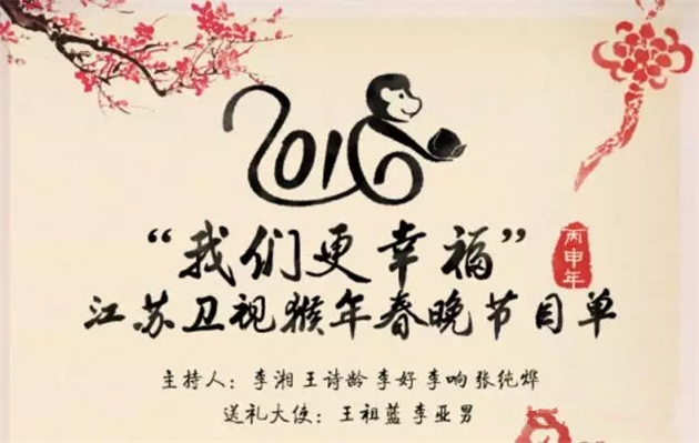 江蘇衛(wèi)視猴年春晚將首次通過不同的播出平臺向來自全球的多個國家和地區(qū)的華人同步播出,2016我們更幸福!