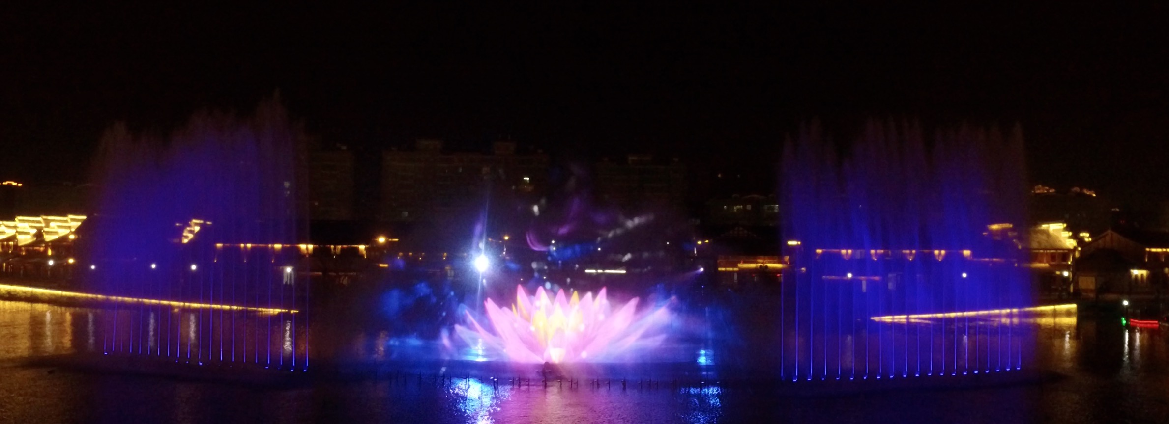 同時,華奧傳媒用創(chuàng)新的設(shè)計理念與世界頂尖的技術(shù)裝置傾力打造了這場具有新媒體藝術(shù)效果的光影秀,實現(xiàn)音樂、升降噴泉、全彩激光、水幕、3D影像、霧森等多維無縫融合,為游客呈現(xiàn)水火交融、流光電影、時空穿越的全感官浸入式震撼體驗。